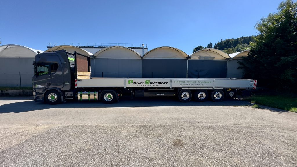 Sattelzugmaschine mit Plateausattelauflieger inkl. abnehmbarer Bordwände